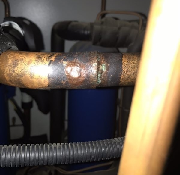 Испаритель и конденсатор являются основными теплообменными компонентами водоохладителя и во время работы подвергаются значительным изменениям давления и температуры. Если медные трубки испарителя или конденсатора повреждены, например, разорваны или перфорированы, произойдет утечка охлаждающей жидкости. Причины этого повреждения могут быть различными, например, плохое качество воды, ведущее к коррозии медных трубок, чрезмерно высокое давление в системе охлаждения и механическая вибрация.